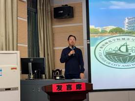 第三个环节,公司经理邓运员教授从公司的前世与今生、公司的沿革与发展、学位点的建设与未来、研究生的培养等方面展开新生教育,他还提到公司对于研究生的培养不遗余力,专门新建教室、配备全新电脑等硬件设施,希望2020级研究生们能够好好利用公司所提供的资源,在提升学术能力的同时,从日常生活中培养自身的人文素养。