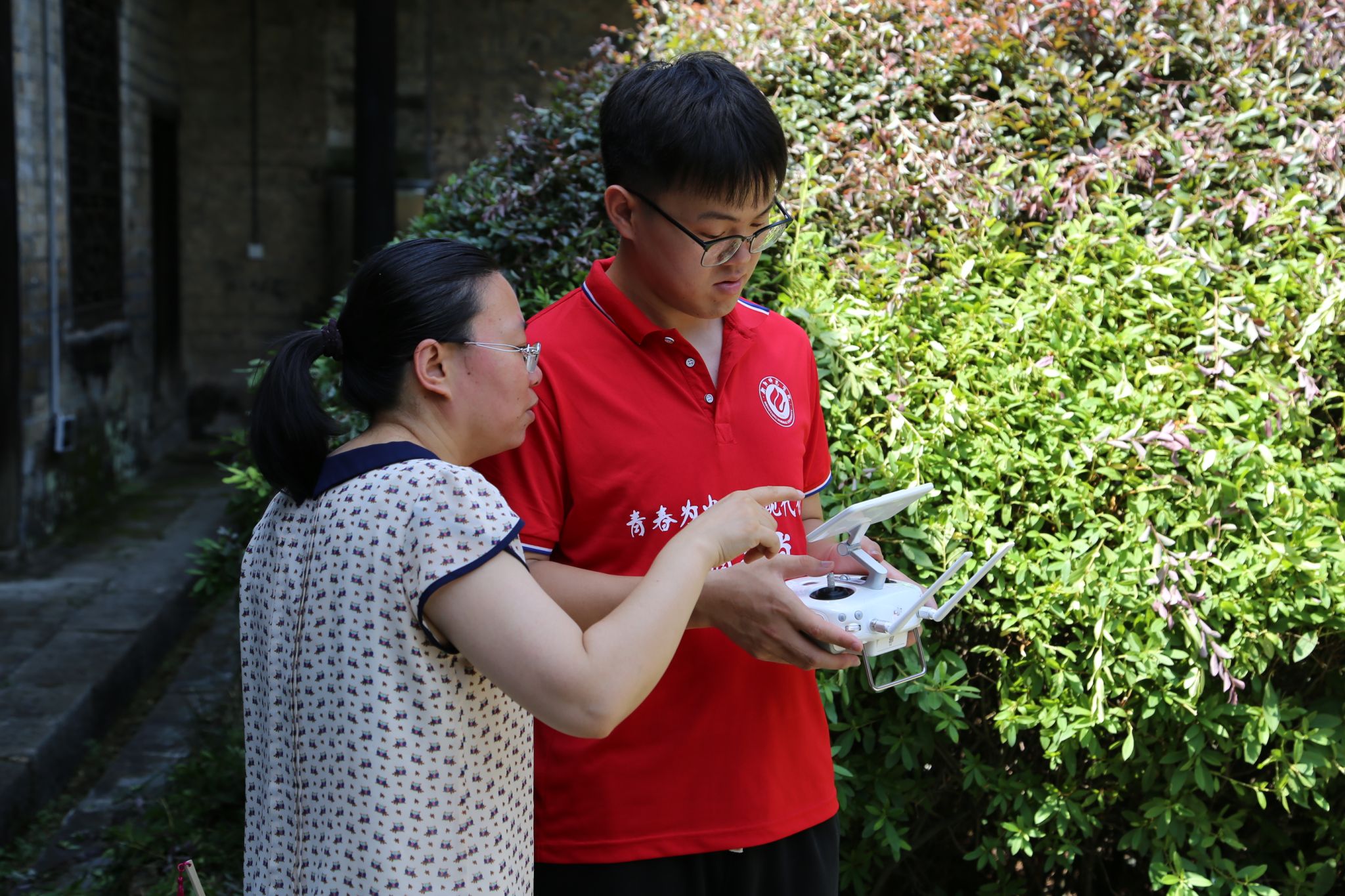 调研过程中,实践团成员在户外顶着烈日进行实践操作,从李家大院的建筑历史、建筑风格、建筑规划等方面出发,对祁阳市潘市镇李家大院进行航测飞行,收集李家大院的古建筑群与文化遗产数据,为村落数字化与景观基因的挖掘作铺垫,并利用大疆无人机对传统古村落李家大院的文化遗产进行数字化保护与景观基因的智能挖掘。最后形成特色文化景观的数字记忆基础,以数智赋能龙溪村优秀传统文化的创造性转化和创新性发展,让中华千年农耕文明彰显新时代风采。