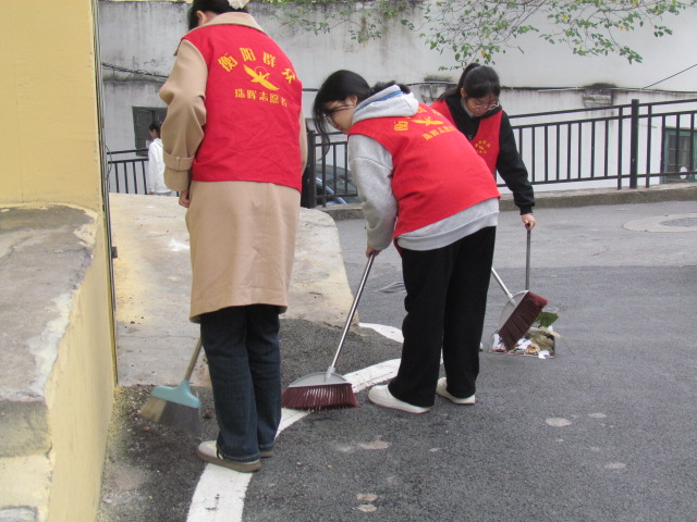 “巡街走巷留轻影,清屑除尘裁雅诗”。清理组志愿者一丝不苟地擦拭每一件公共设施,细致地清除落叶和杂物,用汗水和辛勤劳动打造一个宜居的洁净家园。